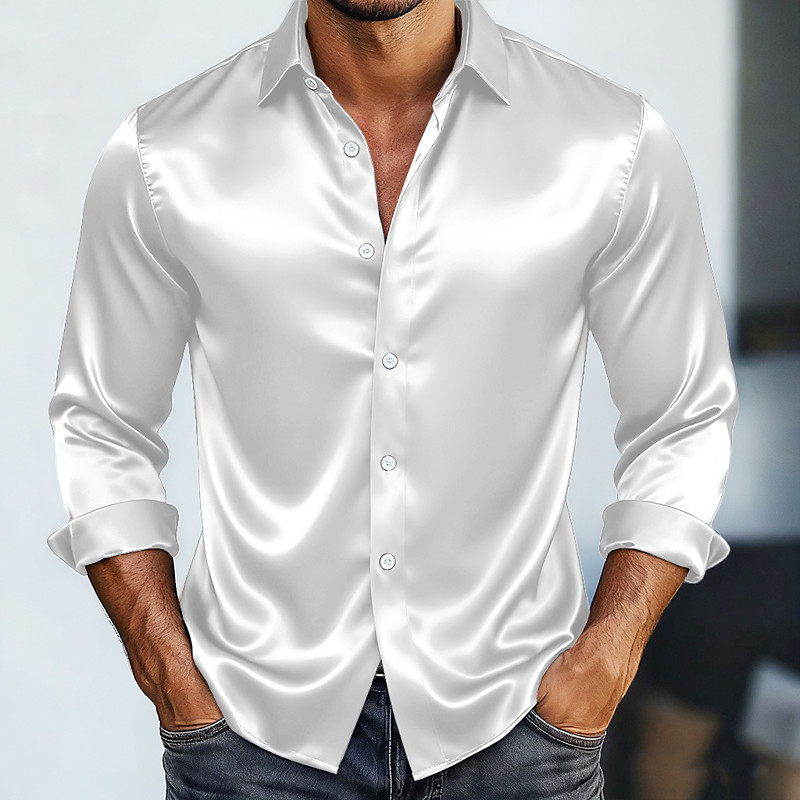 Men's Shirt Silk Like Satin Shirt Dress Shirt Casual Shirt Prom Shirt Plain Formal Wedding Black White Red Royal Blue Long Sleeve Lapel Spring Fall All Seasons Clothing Apparel Plain