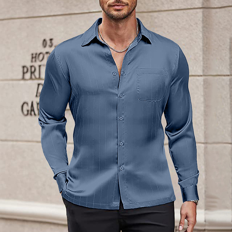 Men's Shirt Satin Shirt Dress Shirt Button Up Shirt Prom Shirt Stripes Business Wedding Light Blue Black White Wine Long Sleeve Shirt Collar All Seasons Clothing Apparel Plain