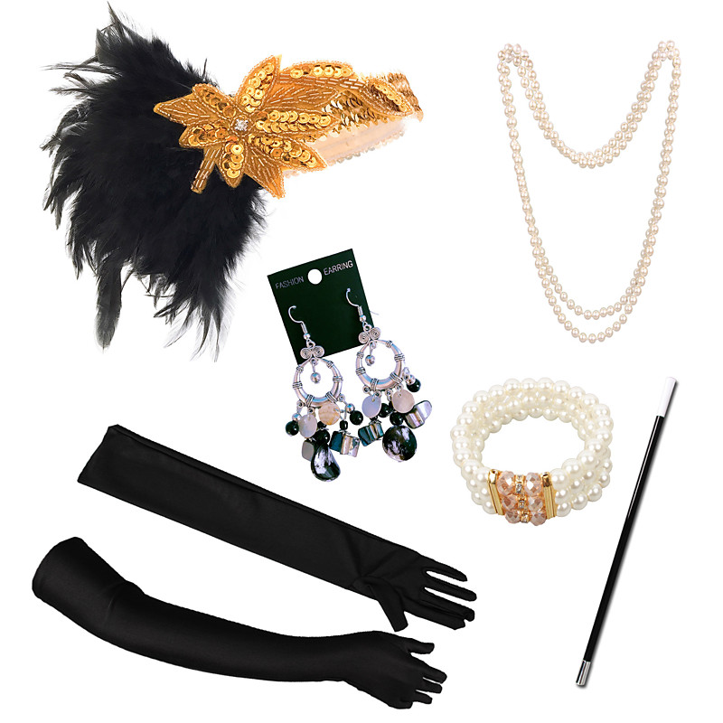 Set Retro Vintage Roaring 20s 1920s Flapper Headband Headwear Accessories Set The Great Gatsby Flapper Girl Feather Fancy Dress Women's Christmas Carnival Masquerade Retro Theme Party Charleston Dance
