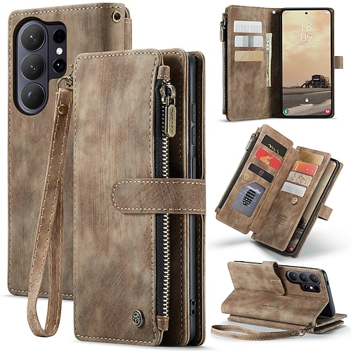 Handy Hülle Handyhüllen Für Samsung Galaxy S26 S26 Ultra Plus Brieftaschenhülle Mit Ständer Mit Handgelenkschlaufe Kartenfach Retro TPU PU-Leder
