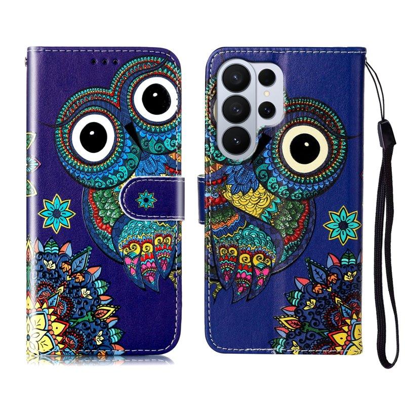Plånboksfodral för Samsung Galaxy S26 Ultra Konstläder med rem - Blå Uggla