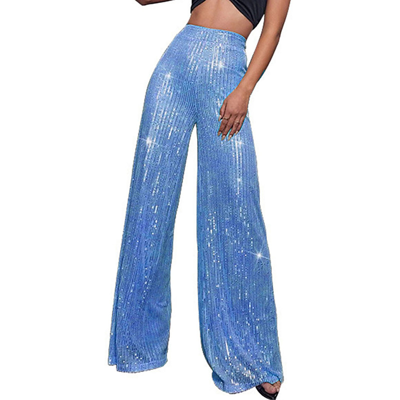 Women's Wide Leg Pants Trousers Sparkly Pants Elegant Fashion Sparkle Full Length High Waist Plain Sequins Comfy Micro-elastic Party Street Party Evening claret M beige Pink gold Black Summer Spring