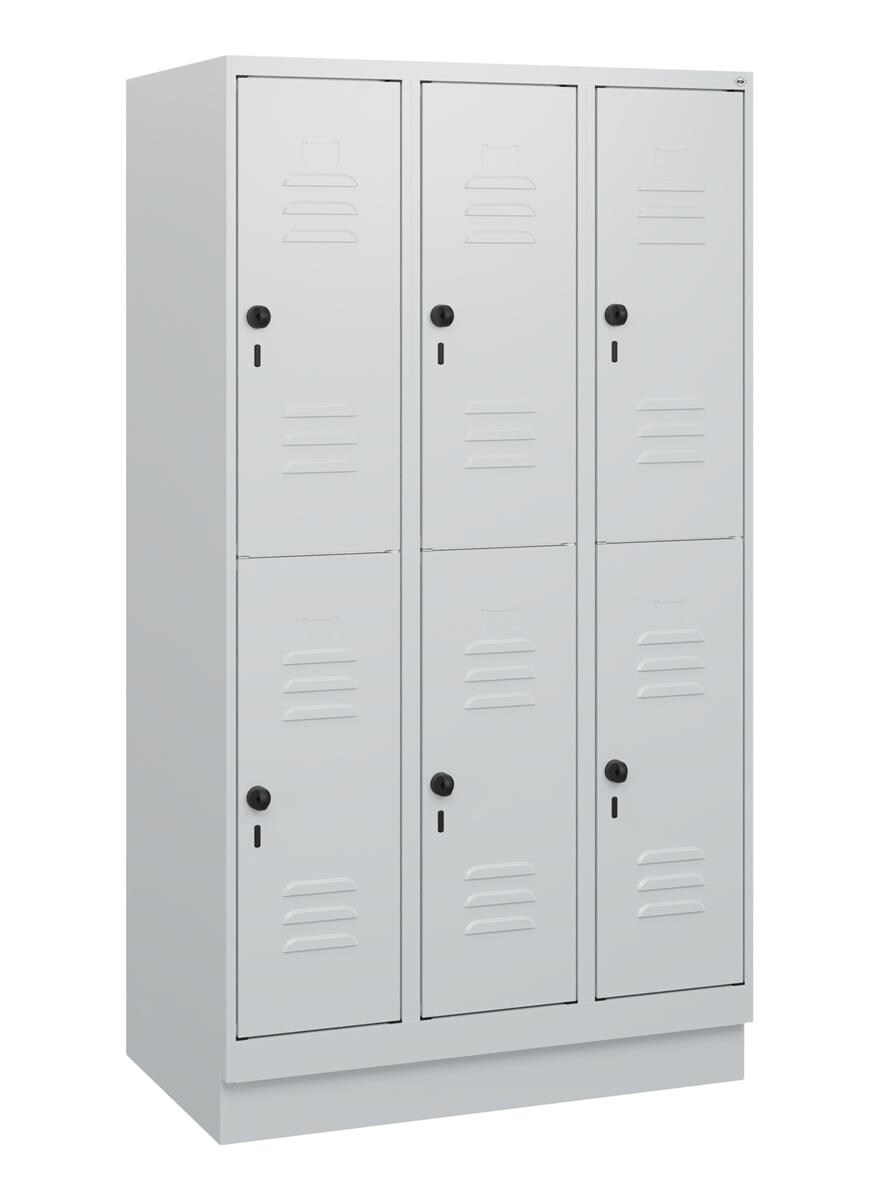 C+P Doppelstock-Spind Classic PLUS, Sockel, 3 Abteile, 1630x900x500mm, 7035/7035