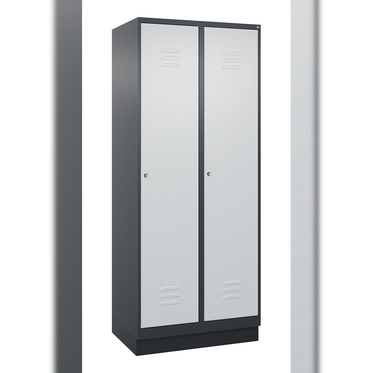 C+P Spind Classic PLUS, Sockel, 2 Abteile, HxBxT 195x80x50cm, Zylinderschloss, Anthrazit/Hellgrau von PROREGAL