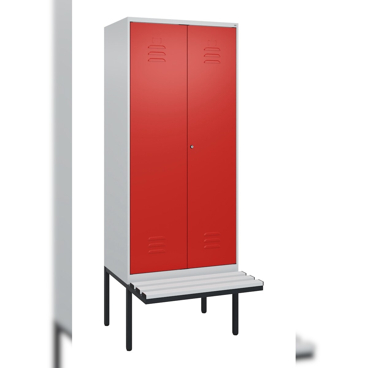 C+P Spind Classic PLUS, schwebender Sitzbank aus Buche 2 Abteile, HxBxT 212x60x82cm, Sicherheitsdrehriegel, Hellgrau/Rubinrot von PROREGAL