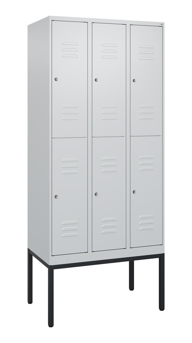 Doppelstock-Spind Classic PLUS, 3 Abteile, grau, HxB 1950 x 1200 mm, mit Füßen, Zylinderschloss C+P