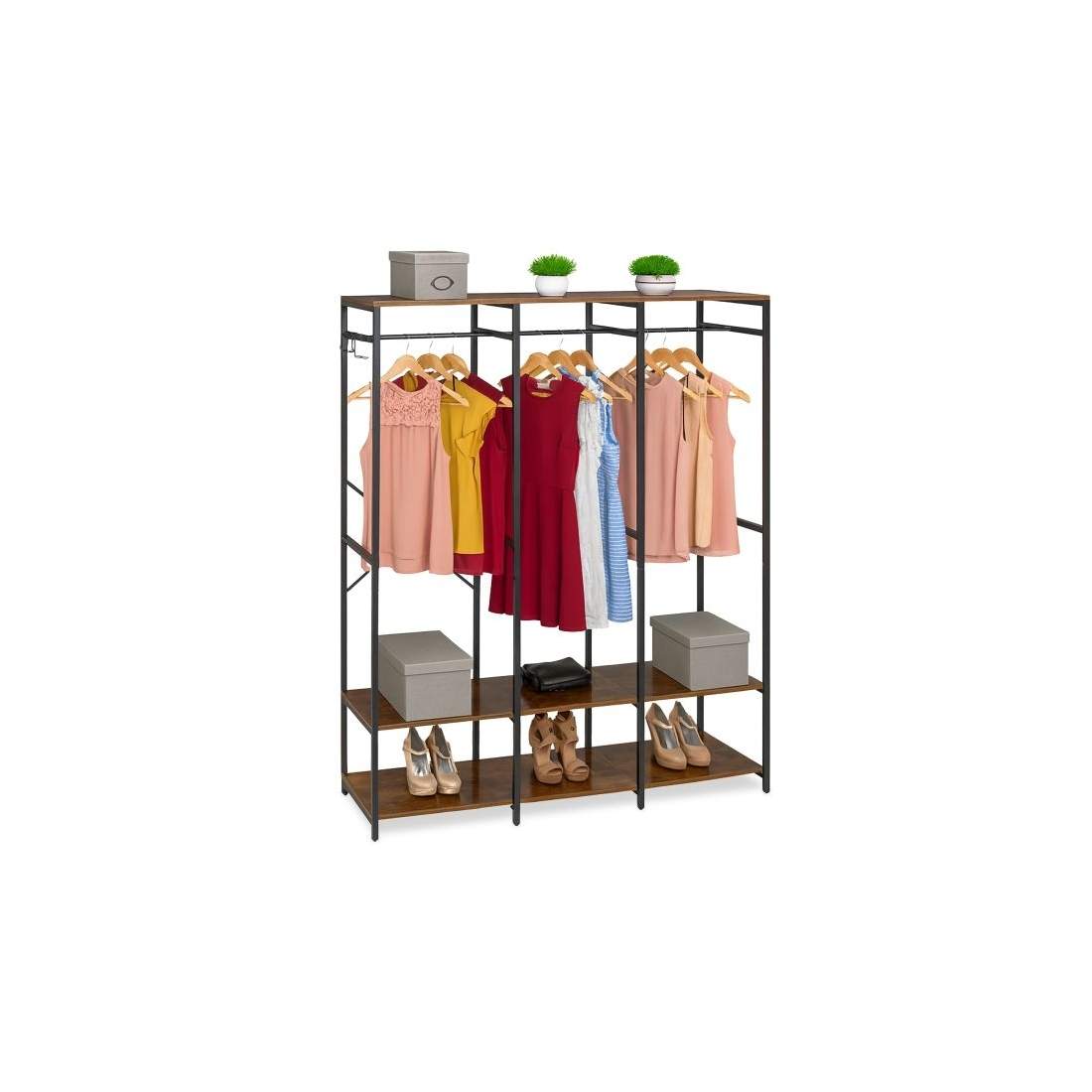Åben garderobe med skinner og hylder – Jern- og træfinish