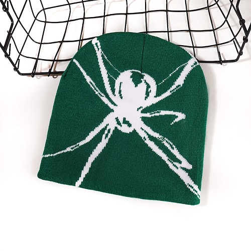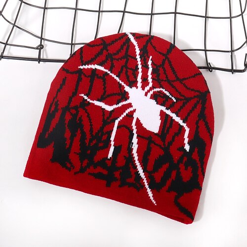 Herren Unisex Beanie Mütze Wintermützen Beanies Schädelkappe Strickmütze Schwarz Weiß Acrylfasern Jacquard Gestrickt Gemütlich Halloween Alltagskleidung Festival Spinne Warm