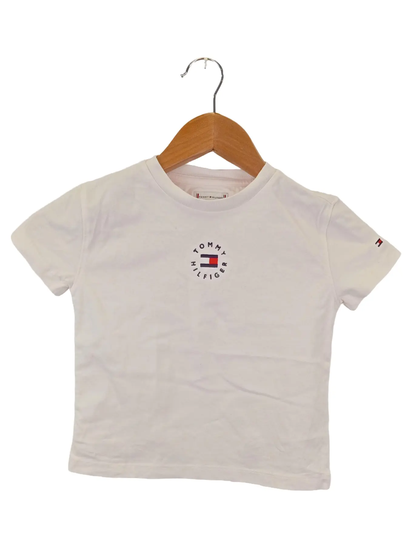 TOMMY HILFIGER Kinder T-Shirt Weiß Logo Größe 104 Baumwolle
