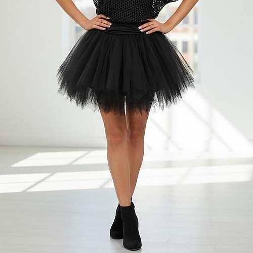 1950s Princess Petticoat Hoop Skirt Tutu Under Skirt Crinoline Tulle Skirt Women's Costume Vintage Cosplay Party / Evening Prom Short / Mini Skirt