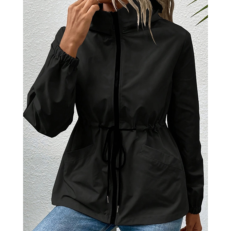 Women's Hoodie Jacket Warm Comfortable Drawstring Zipper Pocket Casual Plain Going out Weekend Zipper Regular Hooded Regular Fit Long Sleeve Outerwear Black Khaki Dark Gray Fall Winter