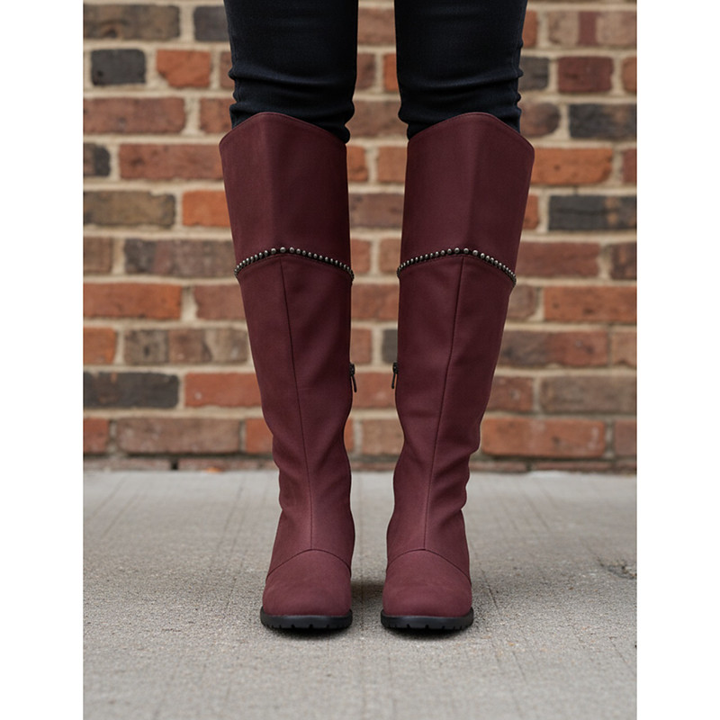 Women's Purple Suede Knee-High Boots with Side Zipper and Studded Detailing - Stylish Casual Footwear for Fall and Winter