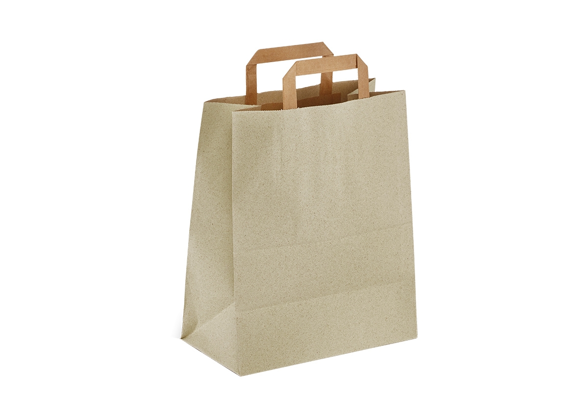 250 Bio Graspapier Tragetaschen Papiertragetaschen mit Grasanteil 18+12x28cm braun
