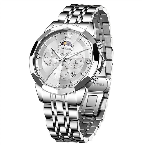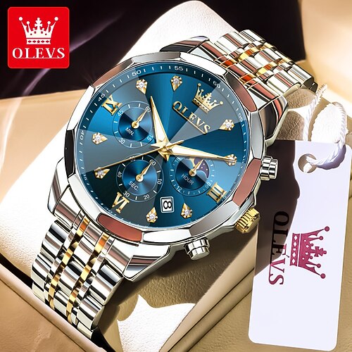 il nuovo orologio da uomo olevs con cinturino in acciaio, calendario, piccolo, tre lancette, indicatore delle fasi lunari, orologio al quarzo multifunzionale, orologio da polso da uomo sportivo,