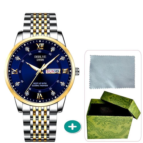 Orologio al quarzo da uomo alla moda, quadrante digitale a rombo, doppio calendario, luminoso, impermeabile, con cinturino in acciaio, decorazione in strass, orologio da lavoro, regalo preferito