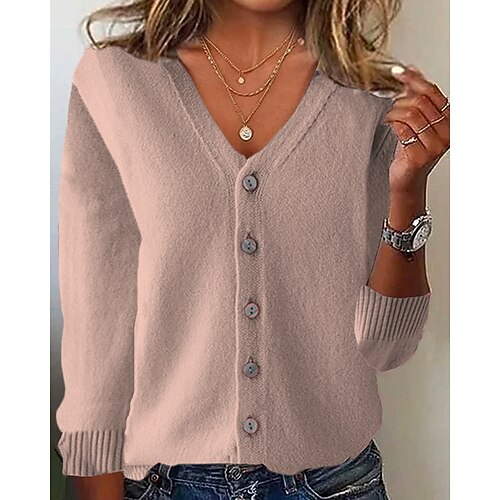 Per donna Cardigan Casual Tinta unica Spesso Scollo a V Lavorato a maglia Manica Lunga Top Regolari Maglia Quotidiano Ferie Uscire Verde Albicocca Autunno Inverno
