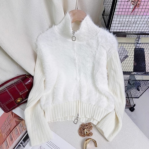 Per donna Felpa Cardigan Elegante Streetwear Casual Tinta unica Scollo a V Tasca Lavorato a maglia Manica Lunga Top lunghi Maglia Quotidiano Ferie Uscire Nero Rosa Autunno Inverno