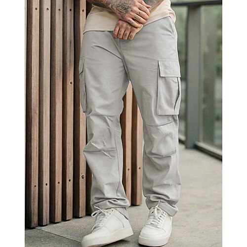 Per uomo Pantaloni cargo Pantaloni della tuta Chino Tasche Gamba dritta Polsino elastico Tinta unica Traspirante Indossabile Lunghezza intera Feste Esterno Interni Sportivo Semplice Bianco grigio Nero