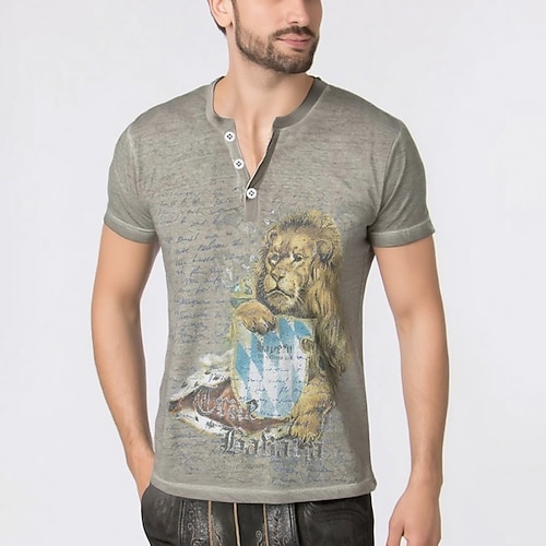 bavarese Monaco Tedesco Corte Maglietta Lederhosen Match Camicia Henley Stemma del leone Grafico per Per uomo Adulti Stampa 3D per Carnevale Birra Oktoberfest Feste