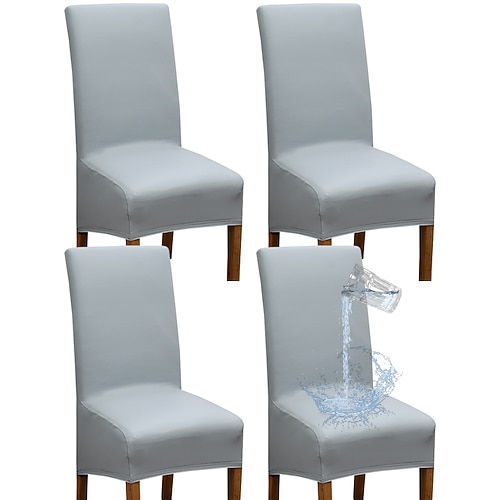 Coprisedia da pranzo 4 pezzi 100% impermeabile, coprisedia elasticizzato nero, coprisedile in similpelle con schienale alto, protezione per sedia con elastico per sala da pranzo, matrimonio