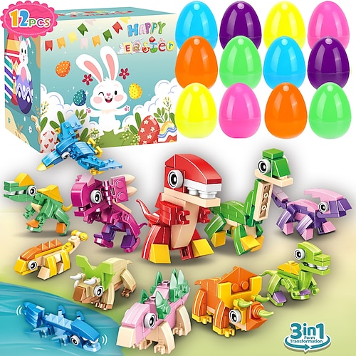 Set di 12/24 mattoncini pasquali per costruire uova, coniglio versatile blocchi di costruzione di animali, attività di gioco creativa, design giocoso, giocattolo di costruzione fai da te a forma di
