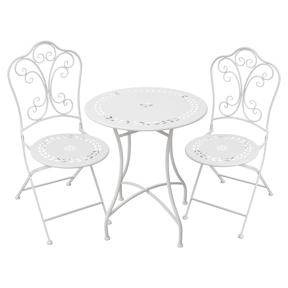 <p>Set tavolo e 2 sedie da esterno in ferro, bianco, Provence Breakfast Esté</p>
