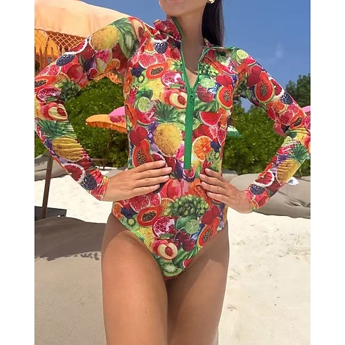 Per donna Costume da bagno Costumi da bagno interi Grafico Protezione UV Manica Lunga Costume da Bagno Con zip Surf Spiaggia Vacanze Primavera