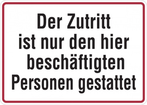 Hinweisschild, Zutritt nur beschäftigte Personen, 250 x 350 mm - 350x250 mm Folie selbstklebend