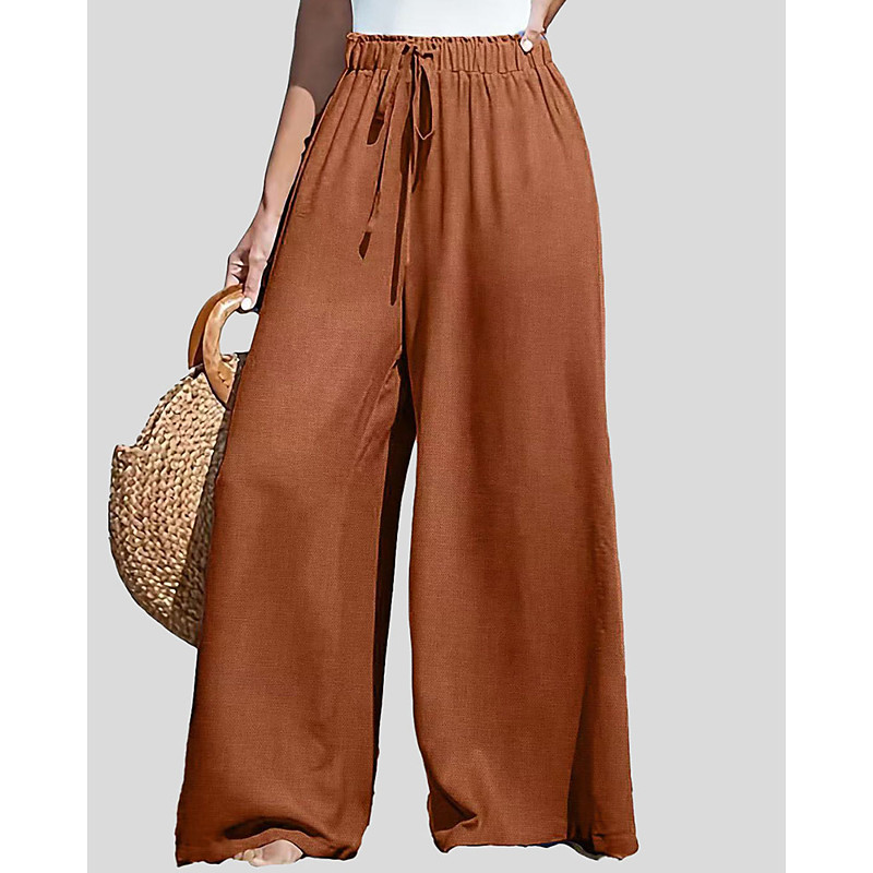 Women's Cotton Linen Pants Wide Leg Chinos Vacation Streetwear Casual Full Length Medium Waist Plain Drawstring Pocket Breathable Micro-elastic Daily Outdoor Street Grey Black Army Green Dark navy