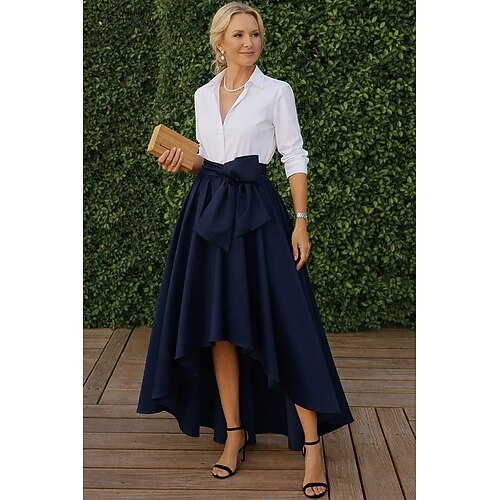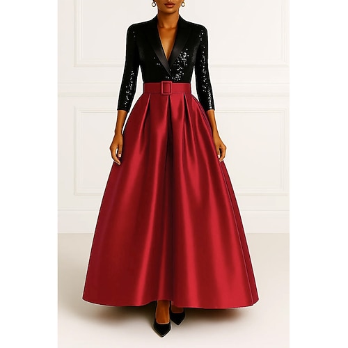 Per donna Da donna Abito da smoking Linea ad A Abito alto-basso Matrimonio Formale Ospite di nozze Strass Elegante Manica 3/4 Manica 3/4 plissettata Lunghezza al pavimento Bavero a lancia Nascosto