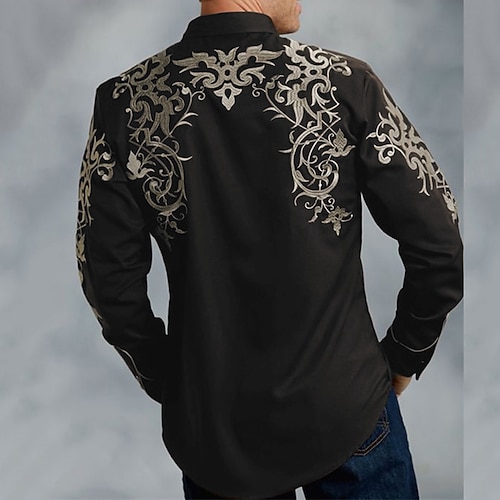 Herren Blumen Totem Hemd Westernhemd Cowboy-Shirt Langarm Mode Designer Lässig Outdoor Ferien Herbst Winter Umlegekragen Druck Button-Down Schwarz Rote Blau Purpur Grün