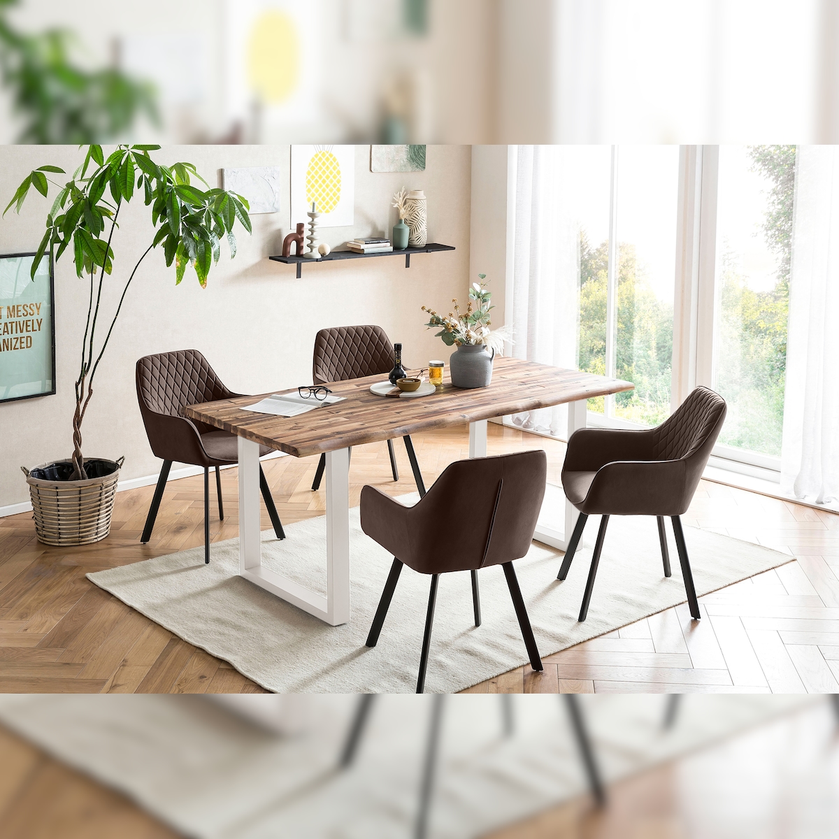 SalesFever Essgruppe 5-tlg. | Tischplatte aus Akazie - natur | Metallgestell - weiß | 4x Stühle Samt - braun, schwarz | 160 x 90 cm