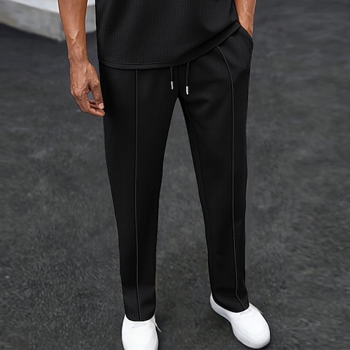 Herren Jogginghose Hose Waffelhose Kordelzug Plissiert Elastischer Bund Einfarbig Feuchtigkeitsableitend Atmungsaktiv Volle Länge Sport im Freien Lässig Täglich Mode Streetwear Schwarz Weiß