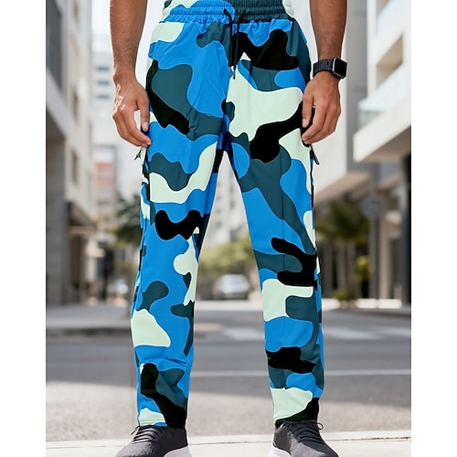 Herren Cargo-Hosen Hose Camo-Hosen Kordelzug Tasche Elastischer Bund Tarnung Komfort Sport im Freien Täglich Mode Lässig Blau Armeegrün Mikroelastisch