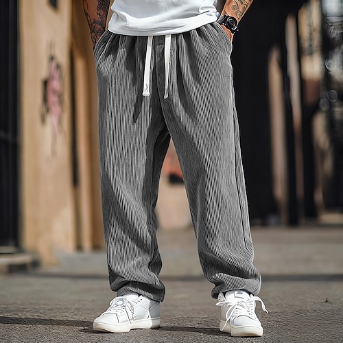 Herren Cordhose Hose Freizeithose Tasche Elastischer Bund Kordelzug Einfach Komfort Sport im Freien Täglich Mode Lässig Schwarz Weiß Mikroelastisch