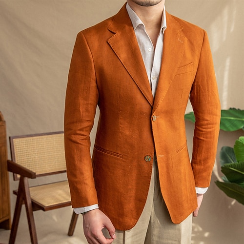Herren Leinenblazer Blazer Geschäft Cocktailparty Hochzeitsfeier Mode Lässig Frühling Herbst 30 % Leinen 60% Polyester Einfach Tasche Knöpfe Bequem Einreihig Blazer Schwarz Weiß Braun Grün