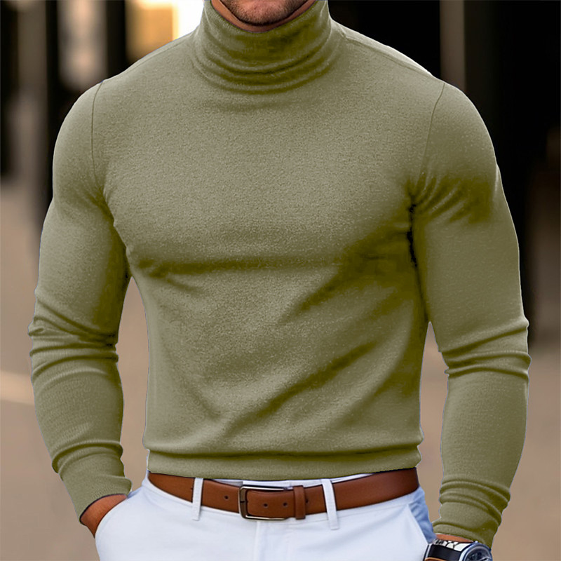Men's Tee Top Long Sleeve Shirt Mock Turtleneck Long Sleeve Turtleneck Pile Neck Fall Winter Spring Fall Solid Color Daily Casual Street Style High Neck Plain Formal Outdoor Street Light Blue
