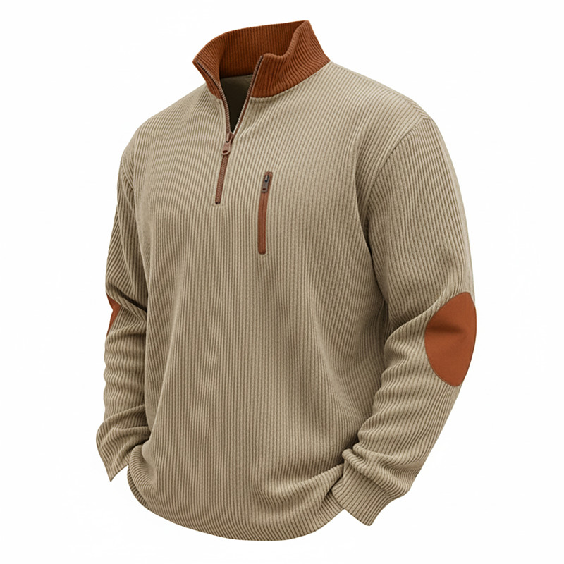 Men's Corduroy Shirt Tee Top Long Sleeve Round Neck Quarter Zip Summer Fall Fall Winter Solid Color Daily Casual Street Style Oversized Loose Warm Casual Outdoor Street Black Light Green Gray Top