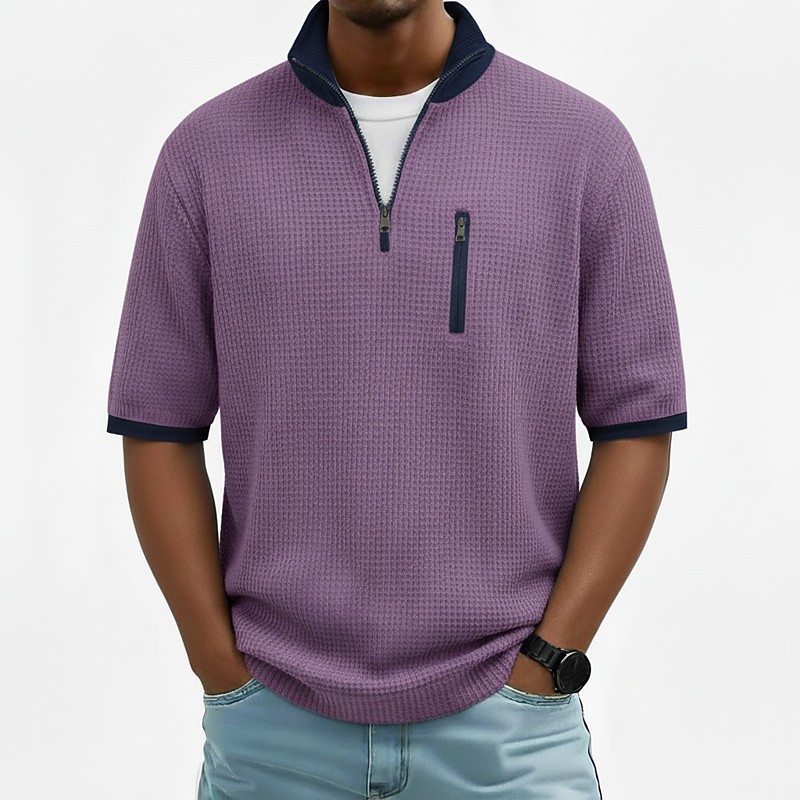 Men Waffle T-shirt Tee Top Short Sleeve Zip Summer Spring All Seasons Solid Color Textured Fashion Designer Casual Zip Up Pocket Casual Daily Outdoor Light Blue Purple Green Top Tee for Men