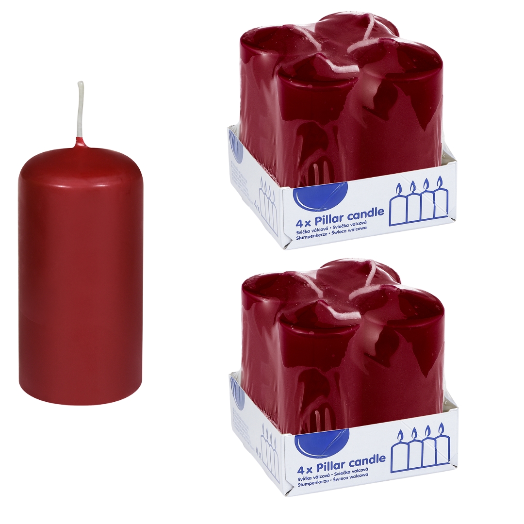 DeinPack Stumpenkerzen bordeaux - 8 Stück Ø 5 cm- Höhe 10 cm Brenndauer: ca. 15 Stunden Hochwertige Stumpenkerze
