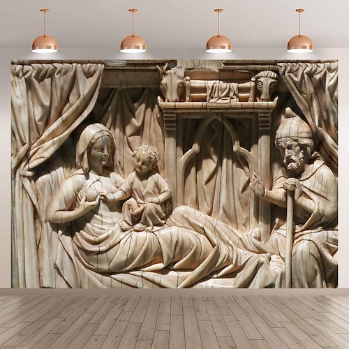Natale appeso arazzo presepe stile medievale intaglio nascita di Gesù grande arte murale decorazione coperta tenda vacanza casa camera da letto soggiorno celebrazione religiosa decorazione