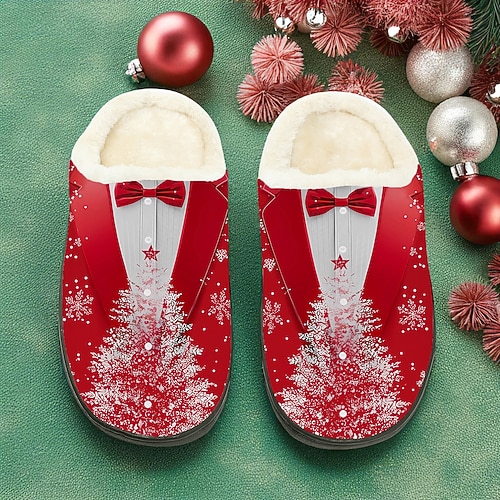 Weihnachtspantoffeln für Herren – festliches Design mit roter Fliege, warme Fleece-Hausschuhe, gemütliche Hausschuhe für Winter und Weihnachten