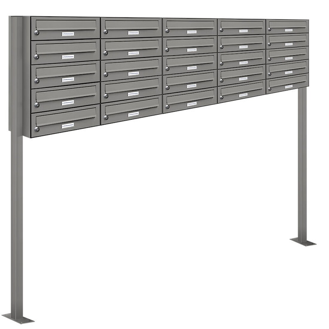 AL Briefkastensysteme 25 Fächer Premium Stand Briefkasten Anlage in RAL 9007 Aluminium Grau, Post A4, robust, wetterfest, Artikelnummer: 132P25S5P9007