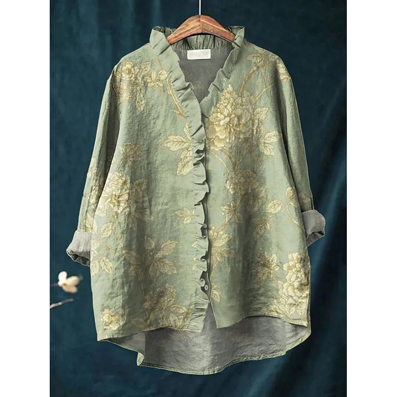 Women's Boho Shirt Floral Graphic Bohemia Vintage Stylish Long Sleeve Regular Tops Daily Holiday Ruffle Sage Green Pink Dusty Rose Purple Fuchsia Summer Spring Fall