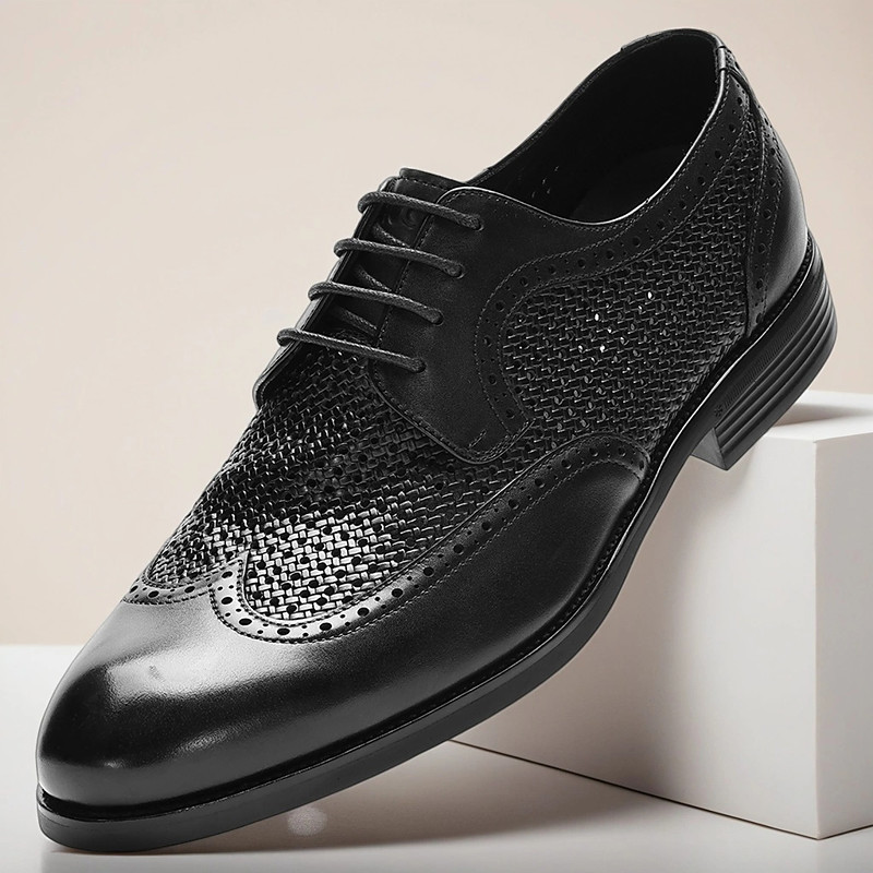 Men's Black Genuine Leather Brogue Oxford Shoes – Elegant Lace-Up Dress Shoes for Business, Banquets and Formal Wear