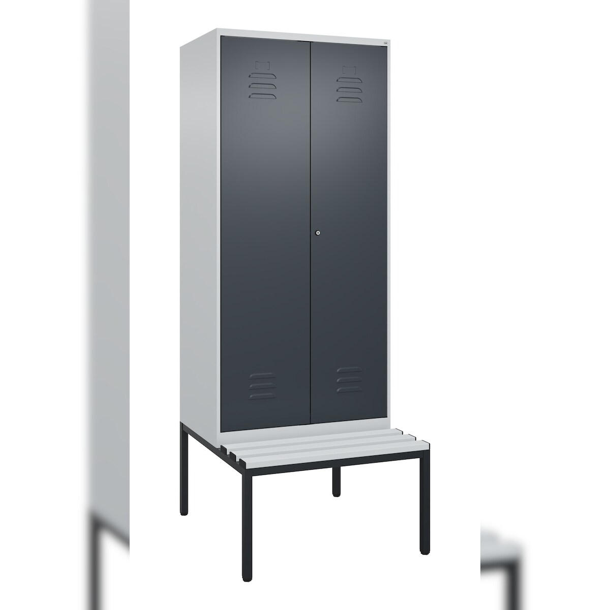 C+P Schwarz-Weiß-Spind Classic PLUS, Bank, 2 Abteile, 2120x600x815mm, 7035/7035