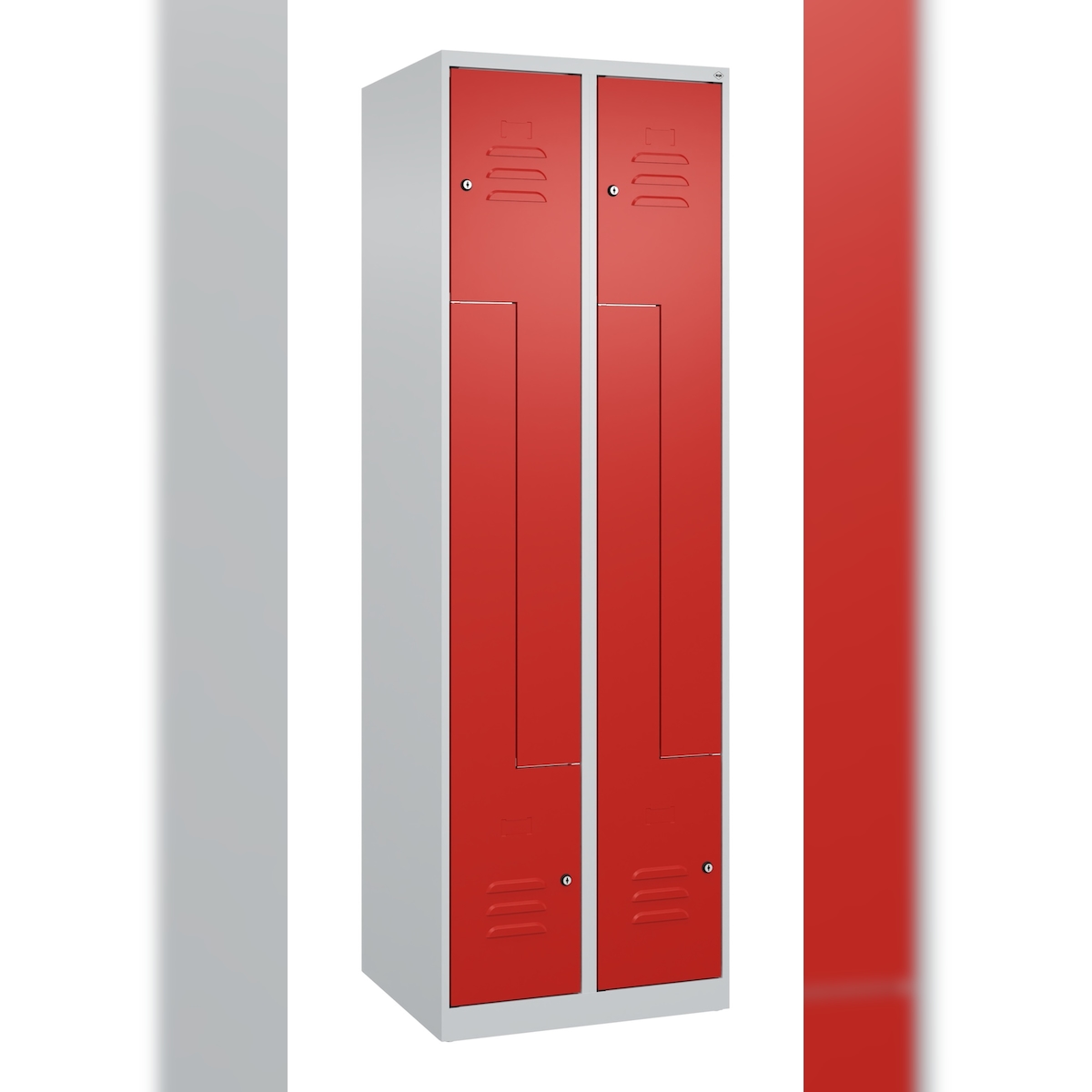 C+P Spind Classic PLUS, Gestell, 2 Abteile, HxBxT 212x80x50cm, Zylinderschloss, Hellgrau/Rot von PROREGAL