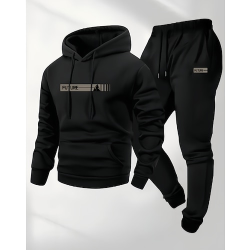 Per uomo Tuta da 2 pezzi Pantaloni sportivi da tuta Felpa con cappuccio con tasca Tinta unita Completo Abbigliamento Autunno / Inverno Grigio scuro Nero Palestra Escursionismo Allenamento Traspirante