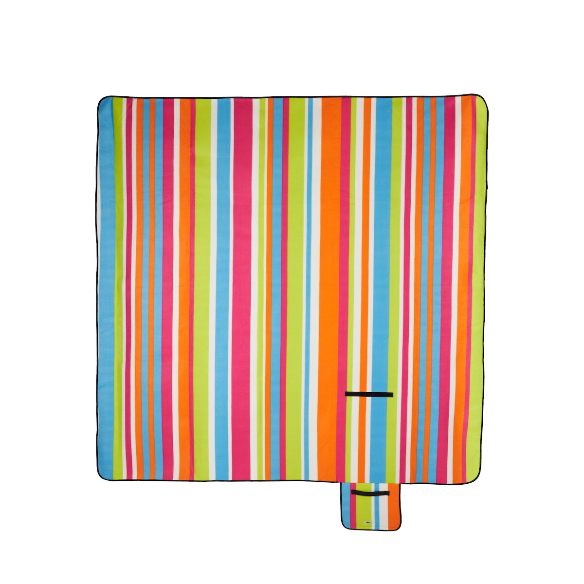 Relaxdays Picknickdecke XXL, 200x200 cm, Fleece Stranddecke, wärmeisoliert, wasserdicht, mit Tragegriff, bunt gestreift