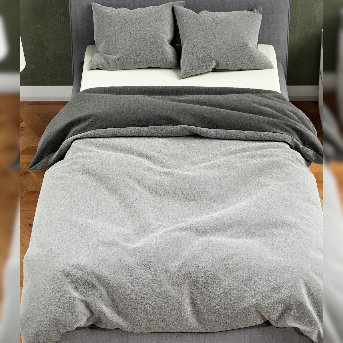 Leonado Vicenti Teddyplüsch Winter Bettwäsche Grau Anthrazit 155x220cm 4 teilig Uni